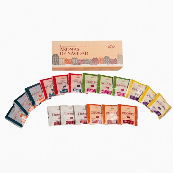 La época más bonita del año llegó a Seitea, y la recibimos con Aromas de Navidad, una colección que reúne los sabores y fragancias más representativos de la temporada. Esta caja incluye 18 sobres de pirámides de té (3 unidades de cada blend), elaborados con ingredientes naturales que evocan la calidez del hogar, los momentos en familia y los clásicos aromas navideños.