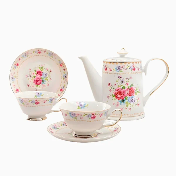 Este set de té de la colección Rose Bouquet, incluye cinco piezas: Una tetera, dos tazas, y dos plato de taza. Además viene en una hermosa caja de regalo que la hace fácil de guardar y perfecta para regalar a un ser querido.